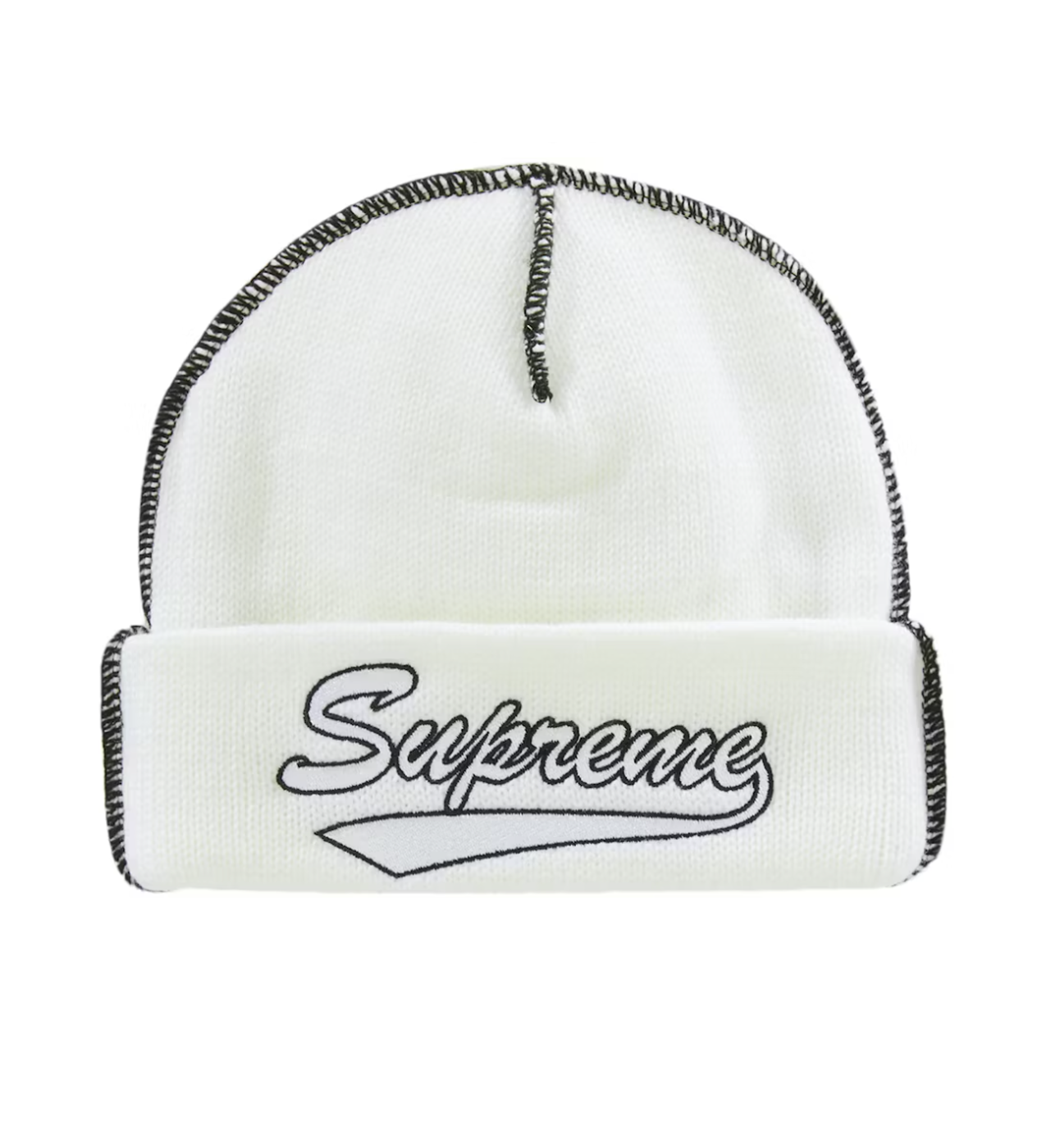 Supreme Contrast Stitch Beanie White