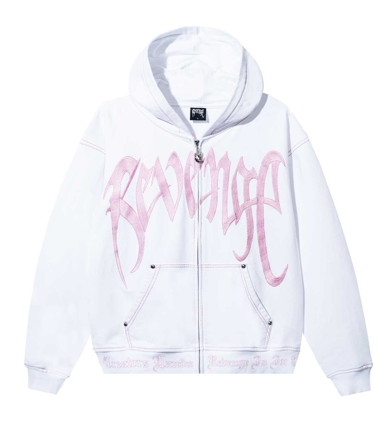 Product Name: Revenge Xxxtentacion Kill Contrast Zip Up Hoodie White/Pink