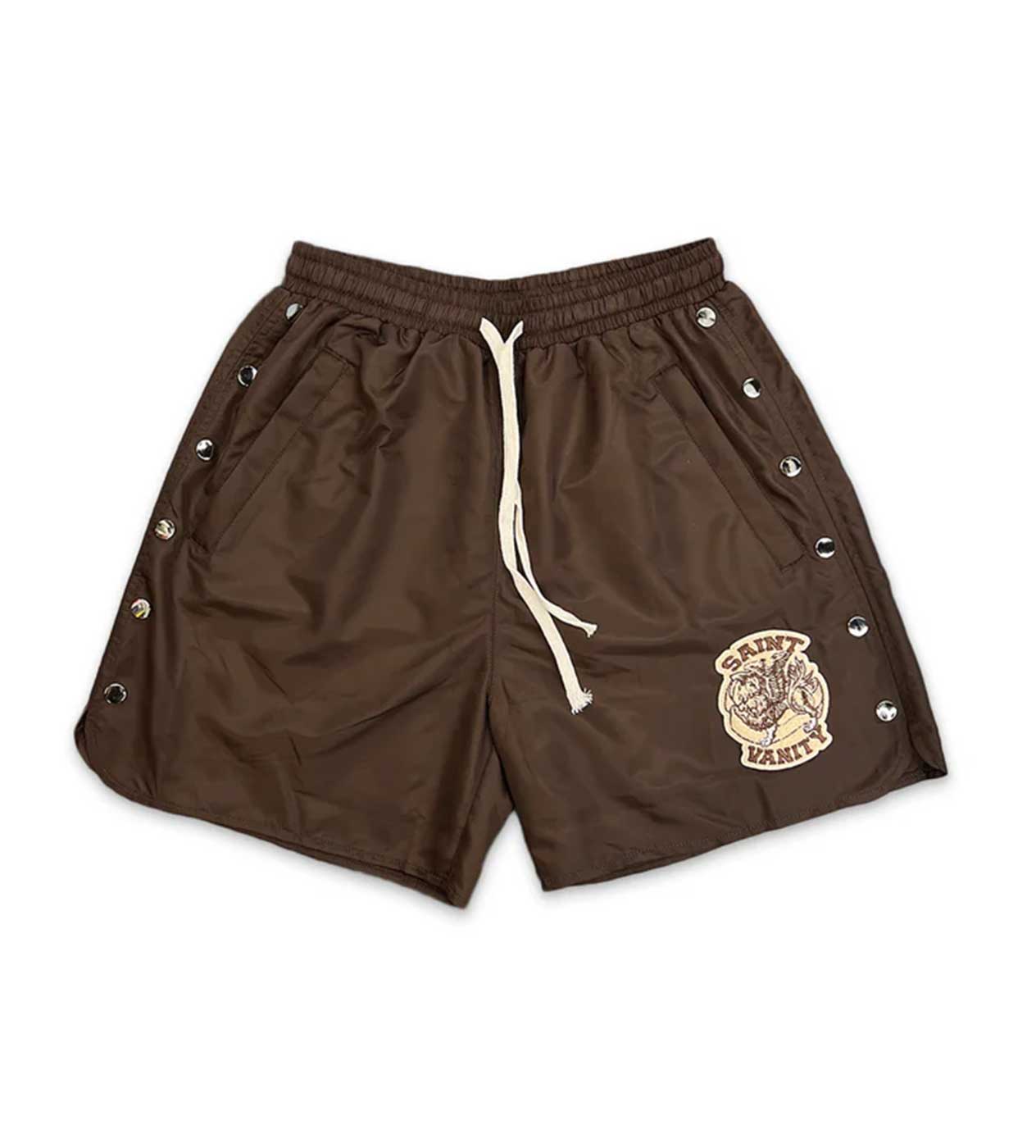 Saint Vanity Nylon Logo Button Shorts Brown